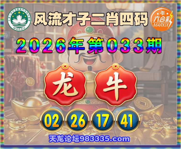 033期:【风流才子】 🥰二肖四码🥰【龙】【02.26.17.41】开:牛41