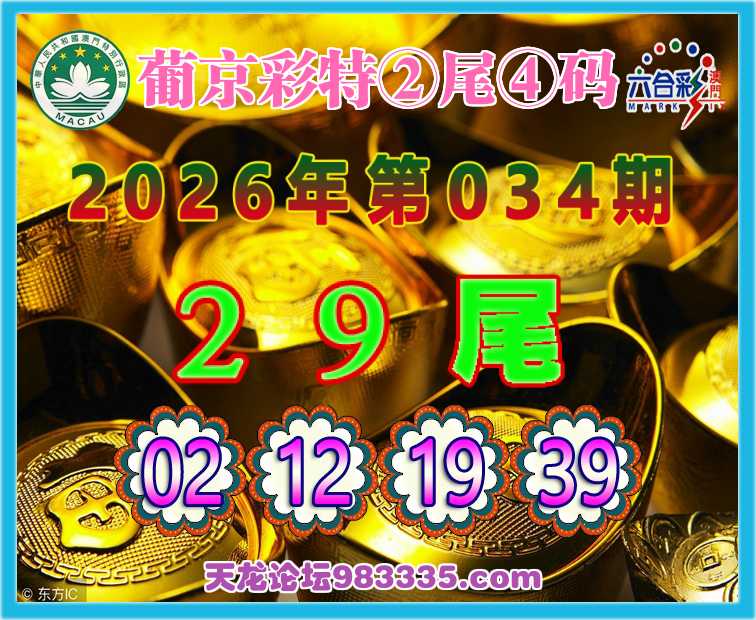 034期: 葡京彩特 ♥️②尾④码♥️【29尾主:02.12.19.39】开:19