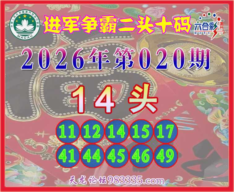 020期:《进军争霸》 🥖二头十码🥖【14头】开:12