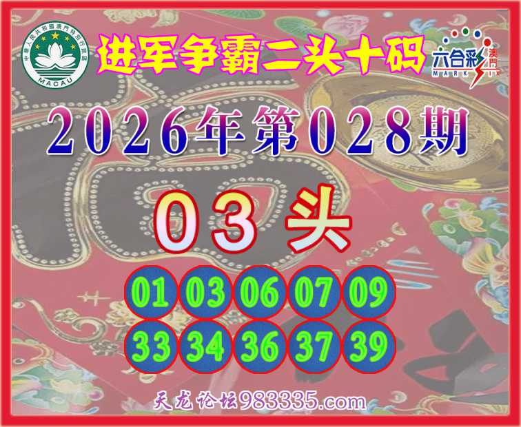 028期:《进军争霸》 🥖二头十码🥖【03头】开:03