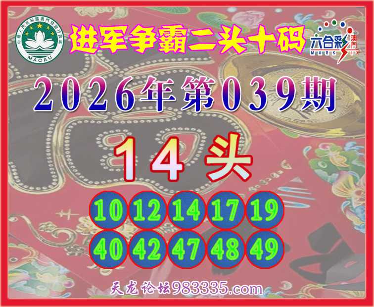 023期:《进军争霸》 🥖二头十码🥖【04头】开:47