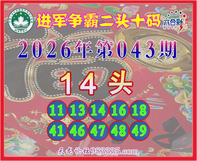 043期:《进军争霸》 🥖二头十码🥖【14头】开:13