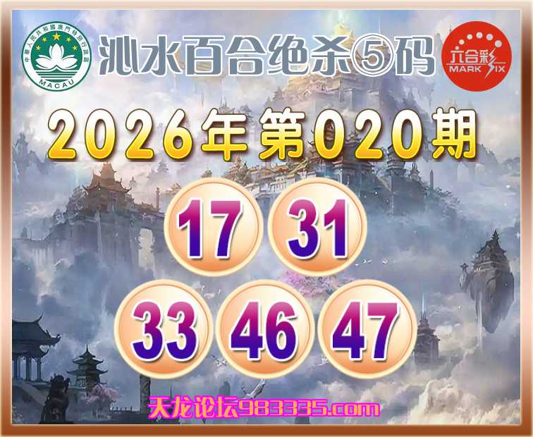 020期:【沁水百合】 🩴绝杀⑤码🩴【17.31.33.46.47】开:马12